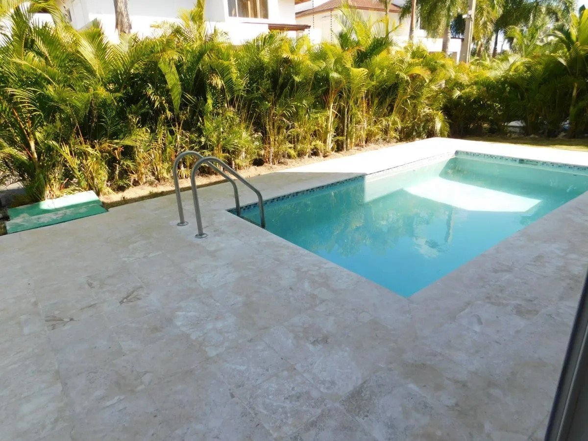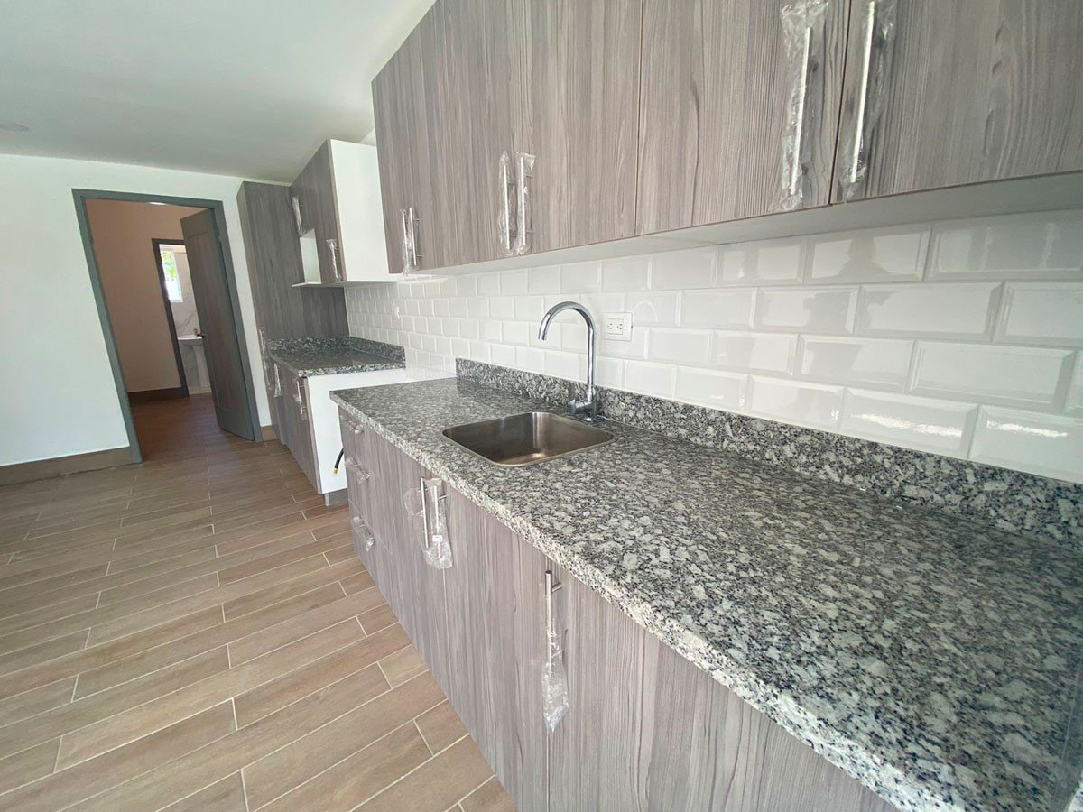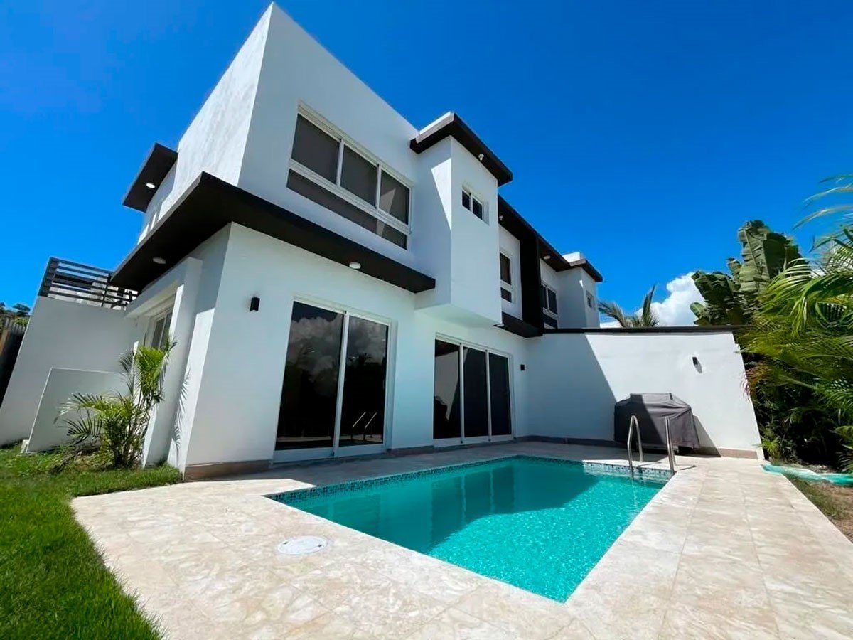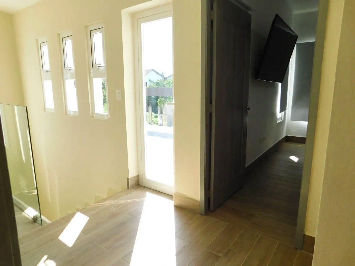2 niveles. 3 habitaciones cada una con su baño, Medio baño de visita, Closets, Sala. Comedor. Amplia y Moderna Cocina. Cuarto de Servicio con su baño. Área de lavado. Instalaciones eléctricas e iluminación LED, Parqueo 2 vehículos, Terrazas en Primer y Segundo Piso. Piscina. 206 m² de construcción, 245 m² terreno