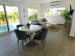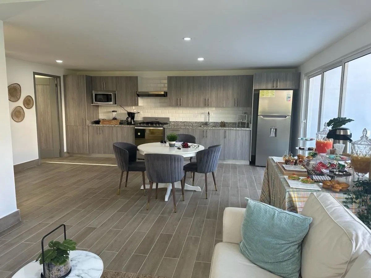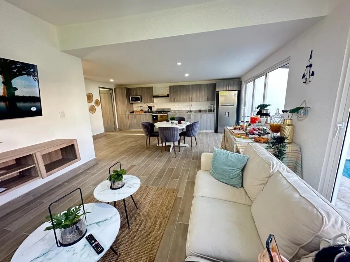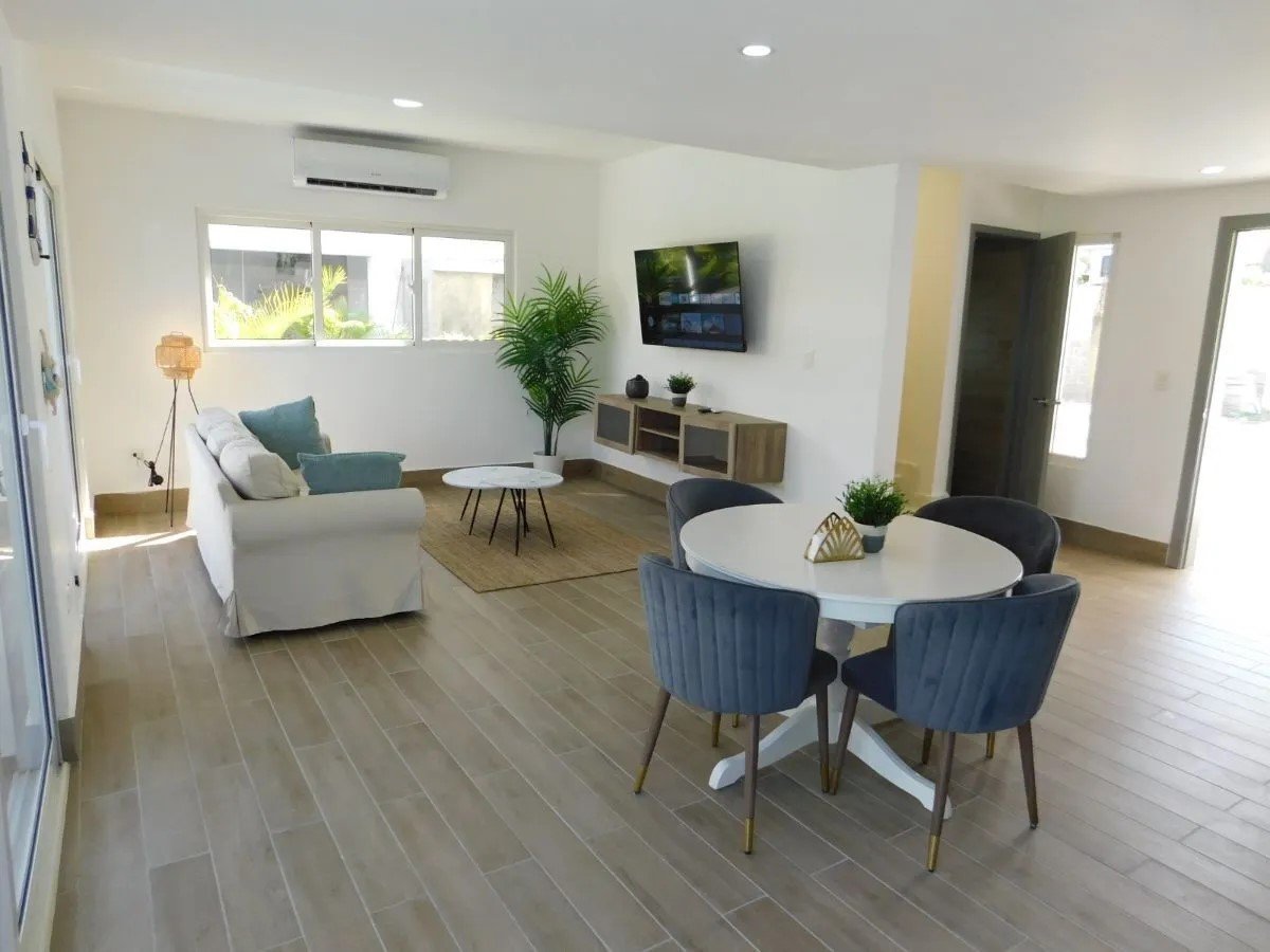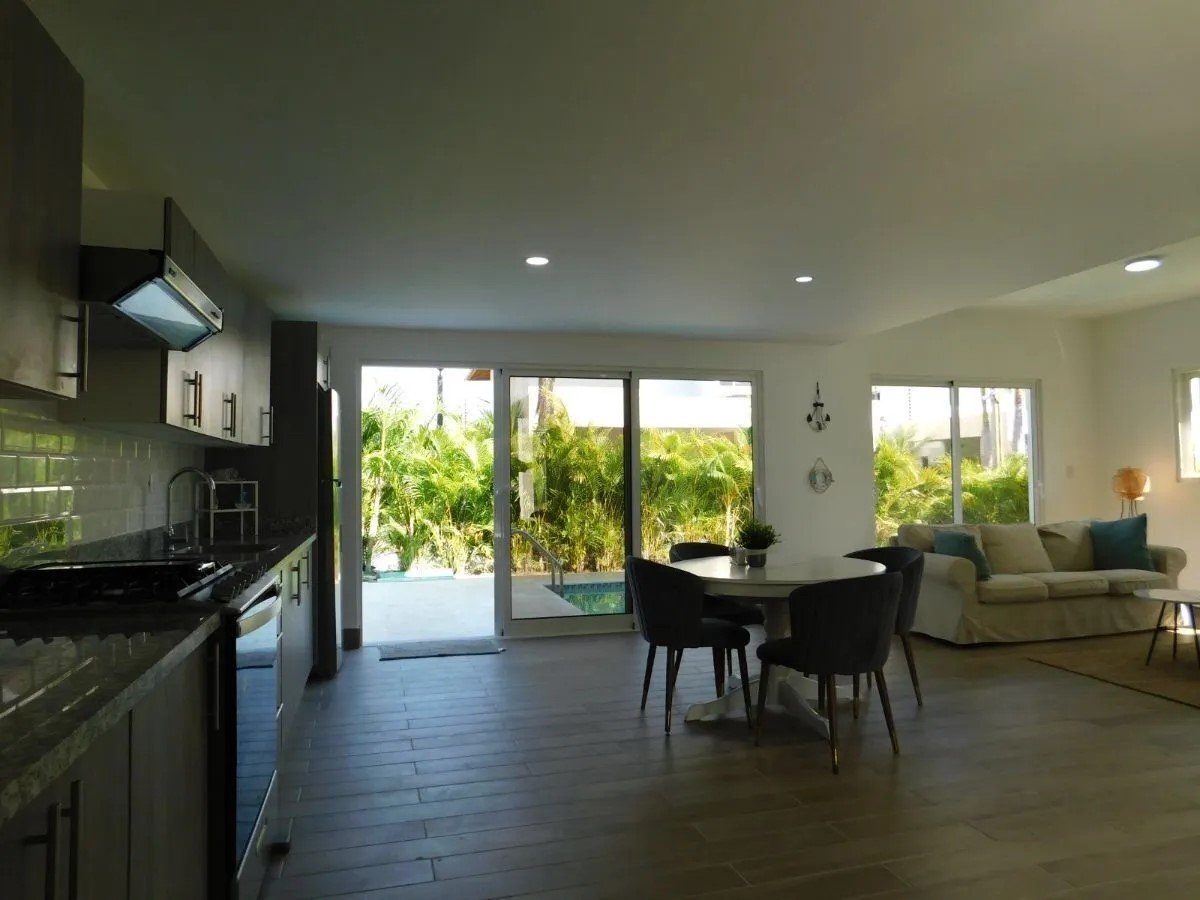 2 niveles. 3 habitaciones cada una con su baño, Medio baño de visita, Closets, Sala. Comedor. Amplia y Moderna Cocina. Cuarto de Servicio con su baño. Área de lavado. Instalaciones eléctricas e iluminación LED, Parqueo 2 vehículos, Terrazas en Primer y Segundo Piso. Piscina. 206 m² de construcción, 245 m² terreno