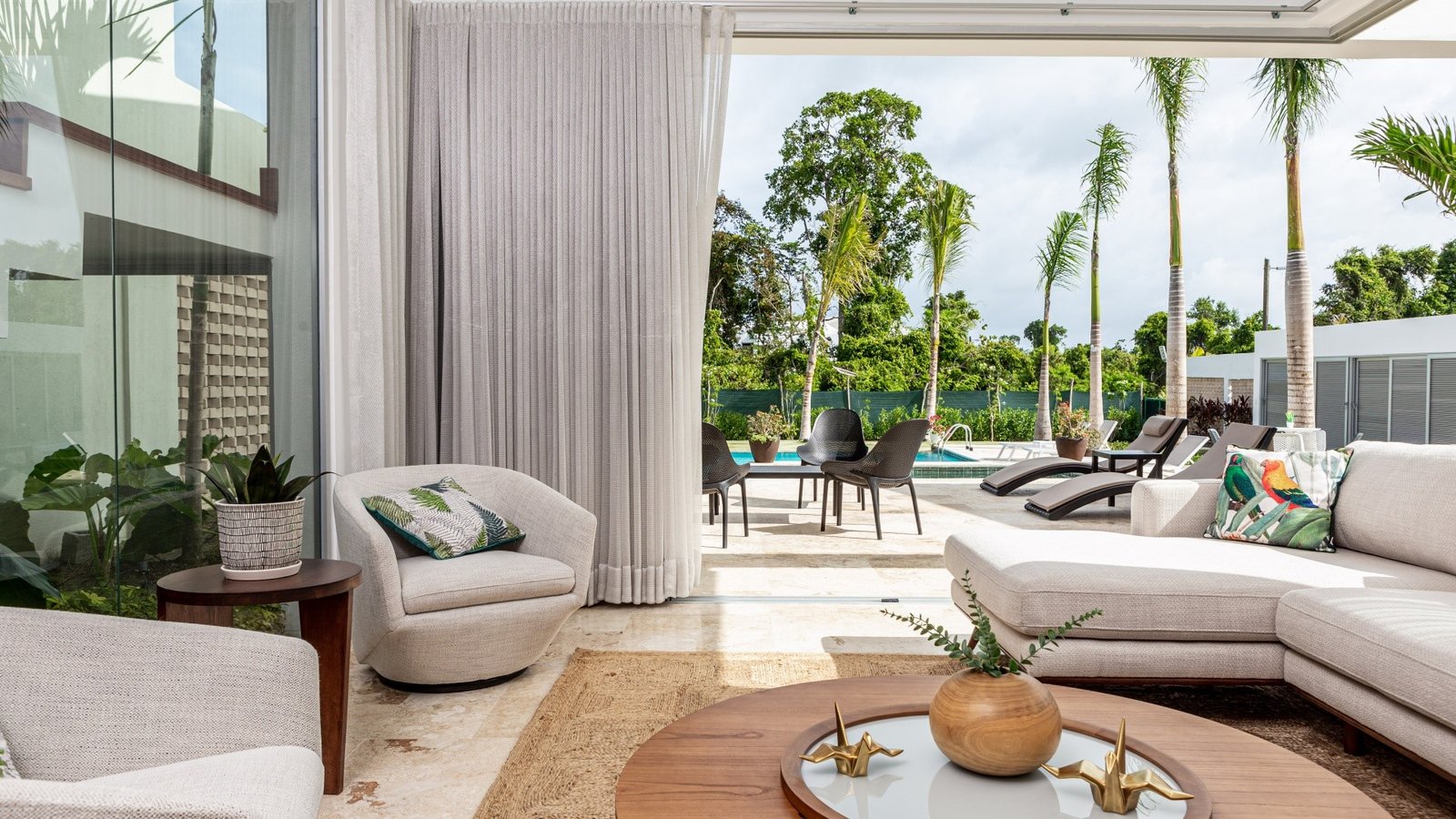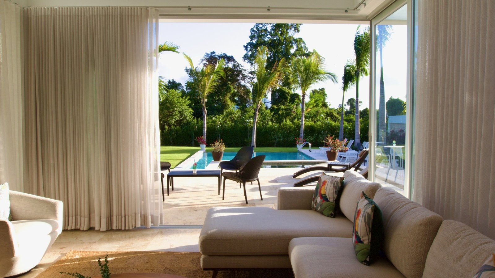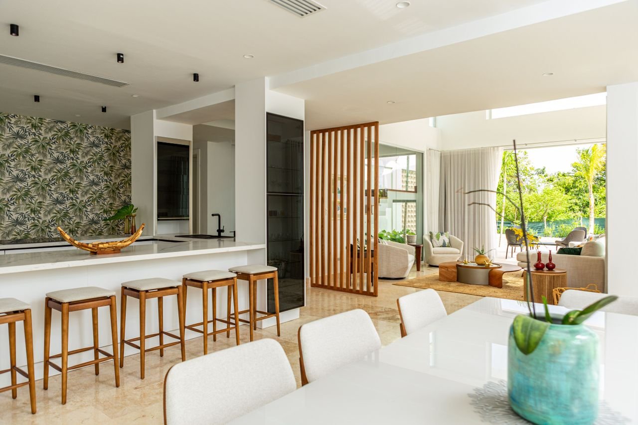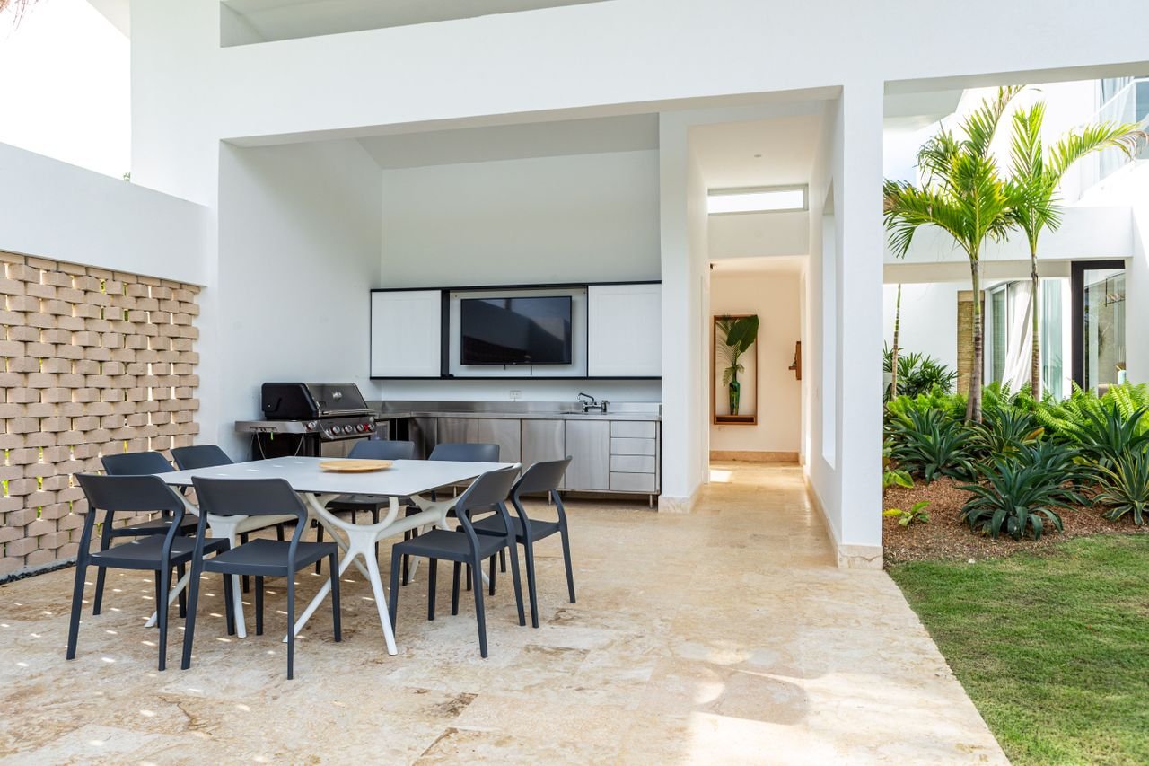 Sala/comedor concepto abierto, Cocina con desayunador, Cocina caliente, Terraza, Sala de exterior, Area de BBQ y Bar equipado, Piscina, Jacuzzi, Jardín delantero y posterior, Árboles Frutales, Habitación principal con baño privado y walk-in closet, Family room, Baño de visita, Parqueo para 4 vehículos, Area de lavado, Habitación de servicio con baño